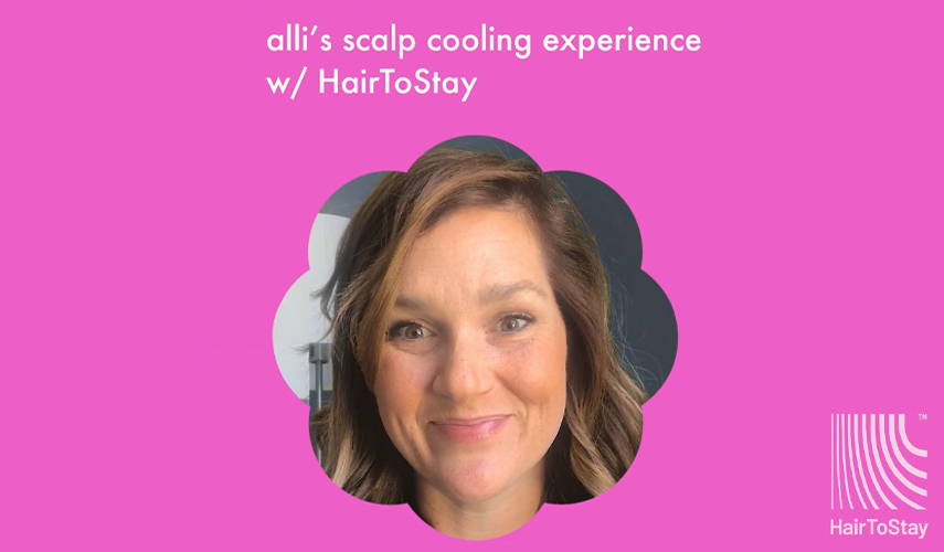 a: I had learned about cold-capping in my stylist’s chair when my salon was doing an October fundraiser for HairToStay. When I got the diagnosis of a recurrence, I immediately thought of the fundraiser and reached out to my salon to see if I could keep my hair, if possible. I knew more this time around and I felt more in the driver’s seat. With a quick phone call my salon connected me to HairToStay who helped to coordinate an overnight shipment of a Paxman cold cap in time for my first chemotherapy treatment days later.